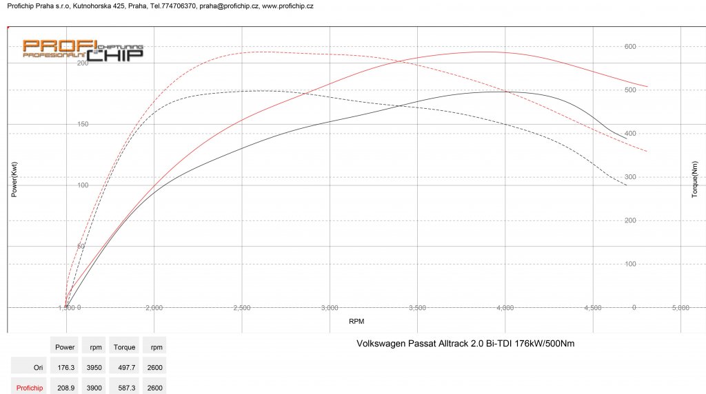 Měření výkonu Chiptuning VW Passat B8 Alltrack 2.0 Bi-TDI -176 kW